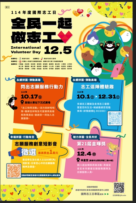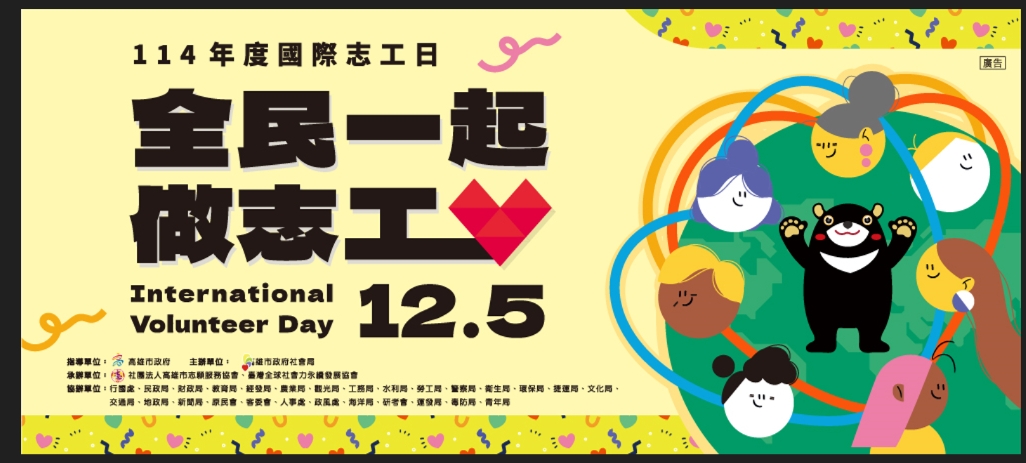 12月5日國際志工日,邀請市民朋友一起響應做志工